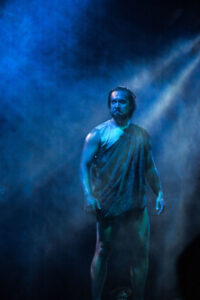 The immersive storytelling was presented in traverse, with the audience standing either side of a central 1.5-metre-high runway stage, relating the tale of warrior Hatupatu and bird woman Kurungaituku in a daring and dramatic anti-gravitational collage of movement, action, and visceral emotion.